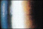 Patient S.H. is a 36-year-old man with a 14-year history of soft contact lens wear. He had been wearing -4.75D extended wear lenses for the past three years on a weekly disposable regimen, and had been purchasing them from an outside source. In his first eye exam in two years, S.H. presented free of ocular symptoms with a corrected visual acuity of 20/20 OU. The most remarkable slit lamp finding was the presence of numerous midperipheral epithelial microcysts (Fig. 1).