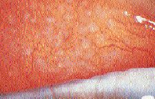 Contact lens induced GPC causes more erythema of the tarsal conjunctiva in part due to the mechanical features of the lens. Raised, whitish areas at the tips of the papillae may appear with contact lens induced GPC, but generally not with vernal catarrh. This probably represents fibrotic change or an infiltrative response to inflammation. The creation of new collagen is typically not a feature of mast cell degranulation (Fig. 2). Some differences exist between GPC occurring in rigid versus soft lens wearers. GPC is 10 times more common and usually occurs earlier in soft lens wearers than in rigid lens wearers. The responses are similar, but the etiologies are different (immune vs. mechanical). In soft lens GPC, the response is often more diffuse but tends to be more severe in the zones nearest the fold because these are the zones with the greatest immunologic response. The response is generally greater nasally than temporally (Fig. 3). In rigid lens GPC, the response is often more localized and is found to be greater closer to the lash margin (involves zones two and three) because of the lens diameter and mechanical etiology (Fig. 4). The papillae are smaller with more space found between each one. A crater-like excavation is sometimes present and the response can occasionally be greater on the lower tarsal conjunctiva. High myopic prescriptions may induce a greater and disparate response between eyes, depending upon the edge design and lens material (deposition potential) used.