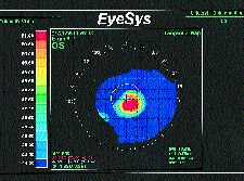 When I entered practice, however, this definition was not sufficient for me to explain the visual loss of patients diagnosed with subtle corneal conditions such as rosacea keratitis, herpes simplex stromal keratitis, anterior basement membrane dystrophies and all the other classic conditions known to induce irregular corneal astigmatism (Table 1). Many of these conditions induce focal epithelial and stromal abnormalities which disrupt the regularity of the anterior refracting corneal surface and induce excessive light scatter -- another form of irregular astigmatism. This is perhaps best illustrated by modern corneal topography instruments which include statistical indices and maps that describe and quantify corneal irregularity. For example, an irregularity map on the Humphrey Atlas System displays local elevation differences between the actual corneal surface and the best fit computer-generated regular toric surface (Fig 2). This type of display is helpful in describing the visual limitations of the ocular surface that may not be due solely to obliquely incidenced astigmatic meridians.