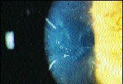 FIG. 3: Daily disposable lens over the 8 RK incisions.