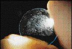 Even with diligent daily lens rubbing and rinsing, a buildup of tear proteins will inevitably coat the inside of the lens. This coating is visible only with the lens off of the eye while the surface is dry (Fig. 2). Since coating is not evident by evaluating the lens on the eye, it doesn't affect vision. This back surface coating impedes tear exchange under the lens and likely causes a mechanical abrasive effect on the central corneal epithelial cells.