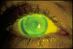 A lenticular flange was incorporated into the lens to provide adequate edge thickness. The fluorescein pattern showed apical alignment or possibly a very slight amount of apical clearance (Figs. 5 & 6). There is approximately 1+mm of movement OU. V.G. is presently wearing the contact lenses all of her waking hours without awareness, and both of her corneas are physiologically intact.