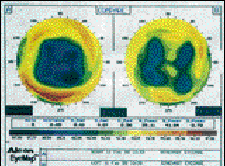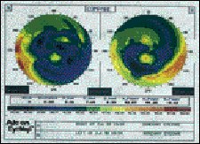 FIG. 1: A typical corneal topography view of a post-RK patient.Resulting