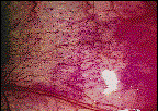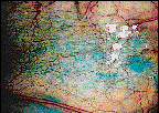 A recent study at Indiana University, in cooperation with Dr. Barbara Caffrey, has verified that lissamine green and rose bengal stain the same areas of the conjunctiva. Figures 1a and 1b show the temporal conjunctival of one of our study patients stained with rose bengal and lissamine green at different times.