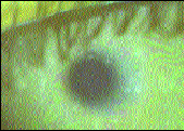 In the presence of a thick lipid layer, interference patterns in the pre-lens aqueous layer are not visible, however, with a thin or absent lipid layer, Newton's ring-type interference fringes are visible. In contrast to the lipid interference fringes, Newton's ring-type interference fringes are dark and light and form in lines of equal thickness (Fig. 7). This type of aqueous layer, visible on Tearscope examination, suggests a thin, relatively unstable tear film. Another warning sign of a thin aqueous layer is specks of dust in the tear film that fail to clear with a blink. Where the aqueous layer is thin, these dust particles are less easily washed away into the tear prisms.
