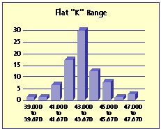 The patients' corneas demonstrated a flat K range from 39.50D to 47.62D, with the largest number of eyes (38 percent) exhibiting a flat K between 43.00D to 43.87D (Figure 2). The amount of corneal cylinder ranged from 1.00D of against-the-rule cylinder to 3.37D of with-the-rule cylinder. The mode fell between 0.12D and 0.50D of with-the-rule corneal cylinder (29 percent) (Figure 3).