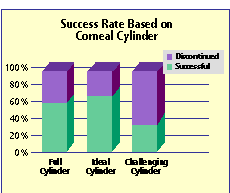 When evaluating the results of the study more thoroughly, we found an "ideal" range of corneal cylinders. While every RGP candidate was enrolled in the study regardless of the amount or location of the corneal cylinder, those patients whose corneal cylinder was between 0.50D of against-the-rule and 2.00D of with-the-rule cylinder (by many standards, the ideal spherical RGP lens candidates), had a greater measure of success.