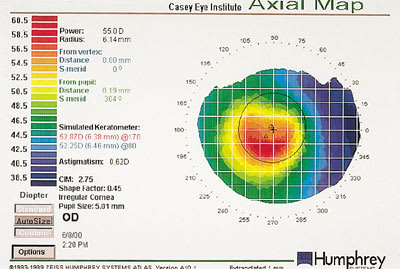 Figure 1. Corneal map OD post-LASIK, note the paracentral