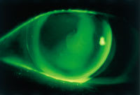 Figure 4. Fluorescein pattern of with mid-peripheral bearing along the temporal (right side).