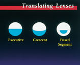 Translating The Tangent Streak (Fused Kontacts) looks like an executive spectacle bifocal with a segment that is flat on top and runs from edge to edge. Segment height and power can be varied and a truncation and prism ballast can be ordered. The Metro-Seg (Metro Optics) is a crescent-shaped bifocal design which offers unlimited add power and more stable rotation properties. The Presbylite RGP multifocal (Lens Dynamics) has a "sectored design" with a wedge-shaped segment that has an aspheric intermediate zone at the top. Prism ballast adds to +3.00D are available. The FluoroPerm ST (Paragon) utilizes an encapsulated segment made from a different material than the rest of the lens. The lens looks like a straight-top spectacle lens blank, can have both the segment height and power varied and incorporates truncation and prism ballast for stabilization. Although some labs may still inventory Fluoroperm ST buttons, in the future the lens will not be available.