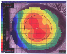 Although all of the above limitations are important, practitioners most frequently overlook the number of readings required to establish accuracy. A recent study by Russell Lowe found that an unacceptable orthokeratology fit could be the direct result of an inaccurate or "rogue" corneal map. Overcome this by obtaining six consecutive topographical maps of each eye. Obtain accurate information by omitting the high and low readings and calculating the mean apical radius and eccentricity values from the remaining four maps. This simple technique helps to avoid many of the fitting problems you encounter when using data from a single map to calculate the initial lens parameters.