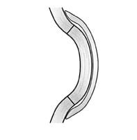 Reverse Geometry Lens A reverse geometry lens (RGL) seeks to conform to the graft button's shape. When it closely matches the contour of the graft's steep peripheral slope, this lens usually does well (Figure 5).Choose a base curve similar to that determined with normal fitting criteria. The diameter of the optical zone should extend about 1.0mm beyond where you estimate the steeper part of the graft begins (usually about 5.5mm to 6.0mm) to prevent it from fitting like a tight cap. The reverse curves' radius and width depend on each graft. In our experience, RGLs that fail do so because the reverse curves were not steep enough to conform to the contour of the graft.