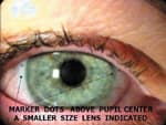 Figure 2. Optimal fitting position of the Triton lens. | Figure 3. Marker dots indicate that this lens is too high on the cornea. |