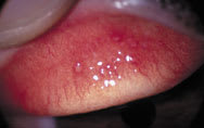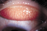 | Figure 5. Generalized contact lens papillary conjunctivitis. | Figure 6. Localized contact lens papillary conjunctivitis. |