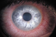 Contact lens-induced acute red eye CLARE is classified as an inflammatory reaction following overnight sleep with contact lenses (Figure 3). It is usually unilateral. The patient typically presents with marked conjunctival redness and irritation or pain. Approximately one third of CLARE patients in our experience are woken by severe pain. Other symptoms noticed on waking or shortly after include discomfort and watering. The most characteristic feature of the condition is the presence of fine diffuse cellular infiltration of the peripheral to mid-peripheral cornea with clusters of small focal infiltrates interspersed or extending into the clear cornea. The conjunctival redness and infiltrates are circumferential in nature, the infiltrates appearing to "stream" from the limbal vessels. If infiltrates extend into the pupillary area, the patient may experience photophobia. The extent of involvement ranges from 10 to 360 degrees of the corneal circumference, although most commonly only 75 percent is affected. There is sometimes epithelial involvement, but if present, is limited to minimal punctate corneal staining over the infiltrates. The infiltrates are found in the anterior stroma. The posterior stroma and anterior chamber are usually unaffected.