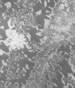 Figure 2. Scanning electron micrograph of residual waxy pitch that appears as snowflake pattern on the surface of a GP lens. | Figure 3. Scanning electron micrograph of numerous bleach-like blotches created by excessive solvent exposure. |