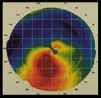 Patient SE is a 28-year-old male with a six-year history of bilateral keratoconus. The patient had historically been a good GP wearer until approximately six months ago when he began to experience discomfort and a loss of wearing time with the right eye only (Figure 1). Slit lamp examination revealed that both lenses were moving well with a slightly low resting position OU (Figure 2). We made a number of attempts to optimize the fit of the right lens, but all failed to resolve the patient's lens awareness symptoms. We eventually fit the patient with a piggyback lens system that consisted of a Focus Night & Day (CIBA) soft lens and a Paragon HDS 100 GP lens.