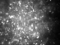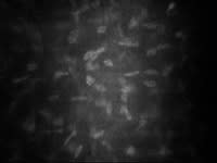 Figure 4. Double walled, highly reflective Acanthamoeba cysts in the corneal stroma viewed by confocal microscopy. | Figure 5. Normal stromal keratocytes of the same patient in the unaffected eye viewed by confocal microscopy. |