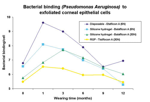 Another striking finding of these studies was that bacterial binding during soft lens wear is most noticeable during the first three to four months of EW, with adaptation following afterward. Therefore, monitoring new EW patients during the first months of EW certainly warrants extra attention.