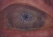 Because of ongoing complications associated with the lids and lashes, we decided that the patient might benefit from a high-Dk scleral or semi-scleral lens. We subsequently fit the patient with Correctech, Inc.'s semi-scleral Jupiter Lens. The final lens parameters were 8.03mm base curve, 6.00D power and 15mm diameter with a best corrected VA of 20/60 (Figures 1, 2 and 3).