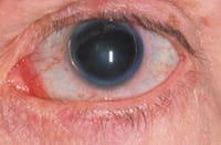 CooperVision produces stock opaque prosthetic contact lenses that have a front-surface dye. Recommended: any H2O2 or cold system.