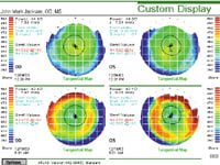 Steven Shum, OD, of Germantown, TN recommends a slightly different approach. He initially targets full distance correction in both eyes and asks the patient to wear those lenses for two weeks. After treatment has reached its maximum, if one eye remains slightly undercorrected, then he selects that eye for near and makes the appropriate adjustment to reach the desired near correction in that eye. This provides the added benefit of letting the patient compare both full distance and monovision correction.