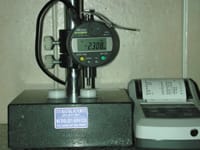 Figure 2. The lens sag gauge consisting of a Mitutoyo Absolute dial thickness gauge, solid base and measuring blocks. |