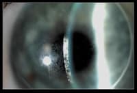 BH returned at five months complaining that the duration of his clear uncorrected vision had decreased from all waking hours to eight hours. Examination showed both lenses coated with a protein film (Figures 2 and 3).