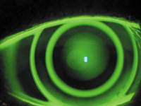 When a practitioner fits the lens on the cornea, he should see a typical bulls-eye fluorescein pattern similar to the modern myopia ortho-k, except with central pooling. The effect of the dual geometric lens is far more effective, predictable and maintains its effect longer than the traditional method of ortho-k.