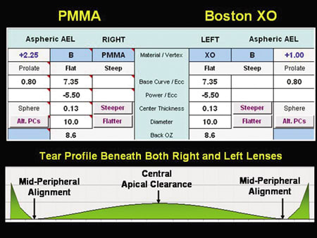 in PMMA (+2.25D) and the left lens manufactured in Boston X0 (+1.00D). |