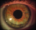 We fit her with GP lenses in an attempt to eliminate the diplopia and improve her visual acuity. We tried reverse-geometry lenses because of her oblate cornea. The lenses improved her vision substantially, eliminating the diplopia and providing acuity of 20/20 in each eye. However, the lenses we tried would decenter or eject from the eye, or they would adhere.