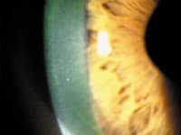 | Figure 3. Fluorescein reveals an imprint of a contact lens. | |