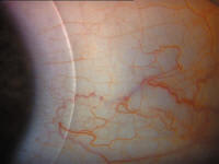 Silicone hydrogel lenses became commercially available in 1998. Silicone rubber is highly oxygen permeable. However, it's also inherently hydrophobic, so lenses made of pure silicone tended to accumulate lipid deposits. To solve this problem, manufacturers combined silicone and conventional hydrogel materials, resulting in contact lenses that are highly oxygen permeable and have increased wettability and less affinity for lipids. Silicone hydrogel lenses have also nearly eliminated hypoxic complications (such as contact lens red eye, microcystic edema and the long-term effect of corneal neovascularization) (Figure 1) that commonly occur with traditional hydrogel materials, particularly in extended wear patients. Table 2 summarizes the parameters of three commercially available silicone hydrogel lenses.