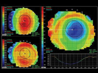 Patient MH underwent routine contact lens corneal reshaping using Paragon CRT lenses to correct –1.75D OU of myopia. Within seven days his uncorrected visual acuities were 20/20 OU and were stable from morning to evening. After one month, MH's only complaint was flare and glare at nighttime.