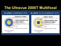 In our hands, one of the more successful toric multifocal designs is the CooperVision Ultravue 2000T. It incorporates a fitting philosophy similar to the Proclear and Frequency 55 Multifocals (both CooperVision). You fit the dominant eye with a design to optimize distance vision and the non- dominant eye with a design to optimize near vision (Figure 1). This provides an improved form of monovision with each eye seeing at distance and near.