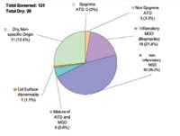 Figure 1 presents the current status of the screened individuals. One of the most striking findings is that overall, approximately 75 percent have dry eye related to meibomian gland dysfunction, either of the inflammatory or non-inflammatory type.