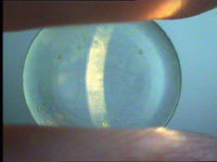 The presenting complaint was discomfort, with no reference to decreased vision. Furthermore, the discomfort had occurred only in the last month. When asked why he hadn't presented for routine review as per the reminder notices, he replied that there was no need because he wasn't having any problems until the lenses became uncomfortable. Figure 2 shows the deplorable state of the lenses, which were opaque with surface deposits.