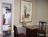 Location is the foundation upon which our 'special place' was created. Our Manhattan location couldn't be better to attract our targeted upscale patients. It's in the fanciest part of town and exactly on the line between and surrounded by the priciest commercial and residential real estate in New York City. Our office decor blends elegance, comfort and function. As soon as you enter, you feel right at home. The walls are adorned with original artwork and the ample seating is soft and elegant. Dozens of magazines and beautiful books are neatly placed throughout the attractively furnished common areas. Laptop workspaces, a courtesy telephone, and even a much-used jigsaw puzzle offer an inviting way for patients to pass the time enjoyably when we too often run a little behind schedule. We also make sure that nobody goes hungry or thirsty. Complimentary coffee, teas, hot chocolate, bottled water and 'power bars' are always available. Just like a Ritz-Carlton Hotel, it's better than being home!