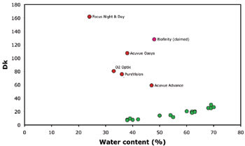lower-water-content materials offering higher oxygen performance as these lenses have