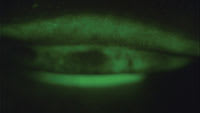 What's new in this area? Over the past few years, Korb et al coined the term "lid wiper epitheliopathy" (Figure 3) to represent staining of the anterior superior tarsal conjunctiva, which is highly associated with symptomatic contact lens wear. To evaluate this staining, instill fluorescein and lissamine green in the eye in a sufficient quantity to cover the ocular surface. Then evert the superior lid and evaluate for staining. Grade the horizontal length and the width of the staining, with a grade 2 representing approximately 50 percent staining of the "lid wiper" area (a staining pattern of approximately 6mm x 1mm coverage). Although studies using different treatment regimens haven't utilized this as an outcome measure, if you do see this staining pattern in symptomatic patients, you should monitor it for possible improvement with changes in the management plan.