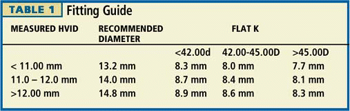 The fitting process for this custom lens is different from most modern lenses. Due to safety concerns surrounding the re-use of diagnostic lenses on different patients, trial fitting sets won't be available. Instead, you fit the initial lens empirically. This may seem daunting if you've spent decades using diagnostic lenses before making a final order, but a fitting guide (Table 1) is available to help the decision process.