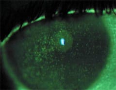 Patients with significant solution-related corneal staining are three times more likely to experience inflammatory events. Staining is an important component of lens wear from a safety standpoint, and according to the staining grid Web site, it plays a role in comfort as well. Evaluating lenses two to four hours after application will ensure that the solution prescribed is providing the comfort desired while maintaining a healthy ocular surface.