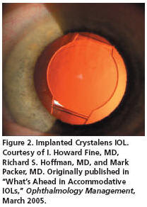Although manufacturers have developed or are developing many bifocal or multifocal IOLs, the three that have FDA approval for use in the United States are ReZoom (AMO), ReStor (Alcon) and Crystalens (Eyeonics, Figure 2).