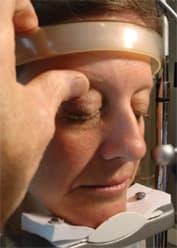 The beauty of this technique is its efficiency. It takes place entirely behind the slit lamp so you don't need to ask the patient to move, and because you substitute your thumb for a swab or ruler, there's no need to stop your exam to acquire these other devices.