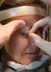 Figure 3. Pin the lid margin against the brow.