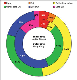 Figure 3. A comparison of contact lens prescribing in Hong Kong and the United States.