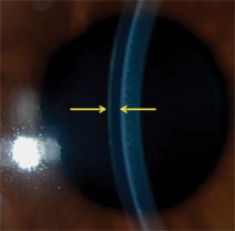 Figure 2. Slit lamp photograph of a custom soft contact lens for keratoconus with a center thickness of 0.40mm to aid in masking a portion of the corneal irregularities.