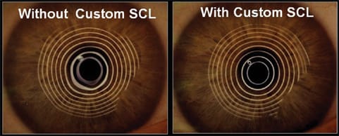 Perhaps the most exciting application of custom silicone hydrogel lens designs is managing irregular corneas. While GP lenses will always be the material of choice for irregular corneas, GP lenses can exhibit significant limitations in terms of patient comfort and the centration of optics.