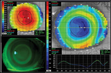 Figure 5. Soft lens orthokeratology induced by overnight wear of an everted –10.00D silicone hydrogel.