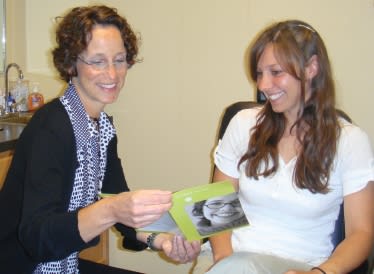 Figure 1. Dr. Robinson emphasizes her recommendation with a brochure.